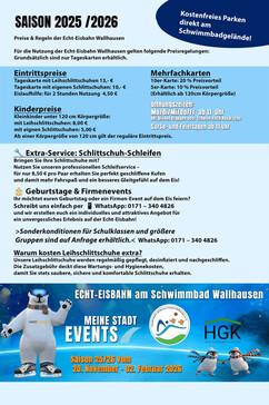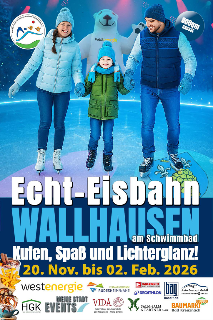 Kufen, Spaß und Lichterglanz vom 20.11.2025 bis 02.02.2026 Alle Infos zur Eisbahn, Öffnungszeiten, Preisen und Events finden sie hier: https://www.meine-stadt-bad-kreuznach.de/eisbahn-wallhausen/ Die Echt-Eisbahn...weiterlesen »